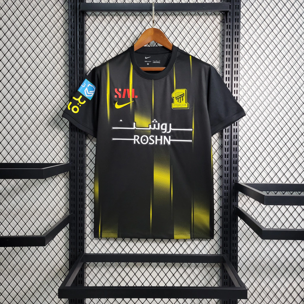 "Camisa reserva Al-Ittihad 2023/2024", "Nova camisa Al-Ittihad temporada 23/24", "Uniforme alternativo Al-Ittihad 2023/2024", "Onde comprar camisa reserva Al-Ittihad 23-24", "Design e cores camisa Al-Ittihad nova temporada", "Lo