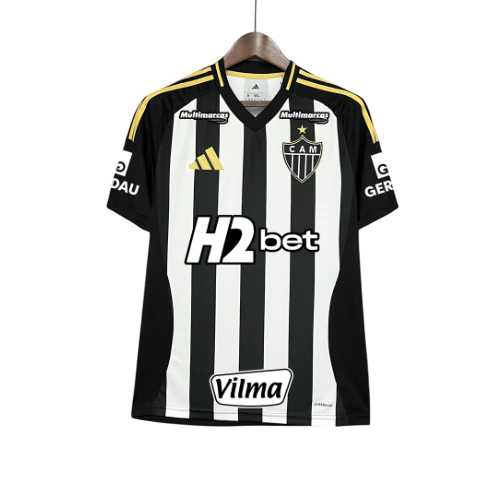 A nova camisa titular do Atlético Mineiro 2025/26 chega com design moderno e imponente, destacando as tradicionais listras em preto e branco, com detalhes exclusivos que celebram a história do Galo. Produzida com tecnologia de ponta, oferece conforto e performance para torcedores e colecionadores. Ideal para quem quer vestir o manto com orgulho na temporada 2025/26.