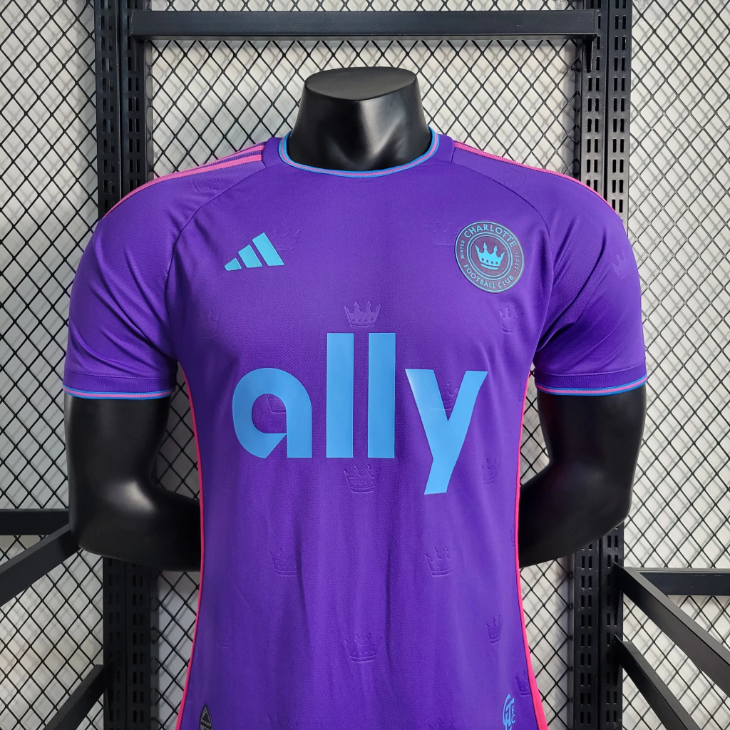 A camisa reserva do Charlotte FC foi batizada como The Crown Jewel Kit” e é baseada no template padrão da marca alemã para a temporada e lembra um pouco o manto away da Argentina na Copa do Mundo.