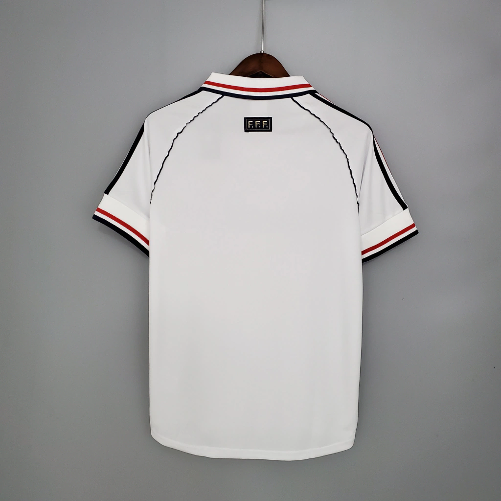 camisa retro França 1998 reserva, camisa Zidane França 1998, camisa Henry França 1998, camisa reserva França 1998 Zidane e Henry, camiseta retrô França 98, camisa vintage França 98, camiseta reserva seleção francesa 1998 Zidane Henry.